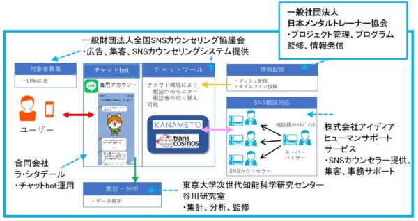 なお、本プログラムは日本メンタルトレーナー協会を代表団体とし、一般財団法人全国SNSカウンセリング協議会、株式会社アイディアヒューマンサポートサービス、東京大学次世代知能科学研究センター谷川研究室、合同会社ラ・シタデールを構成団体とするコンソーシアムにて実施します。